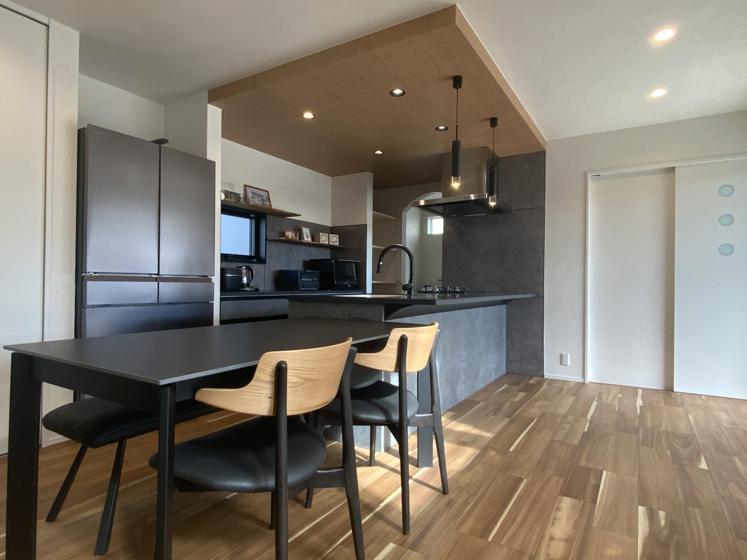動線を工夫して快適なお家にしたい!共働きであるN君ご夫妻は、特に家事動線にこだわられていました。キッチンは、準備や片付けが最小限の移動で行える横並びの設計に、洗濯は天候・時間帯を気にせず干したいとのご要望だったのでランドリールームを採用しました。洗面所と脱衣所・ランドリールームを分けることで、来客時にもプライベート空間を守れます。