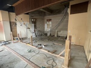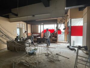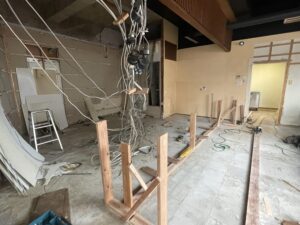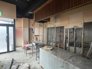 実際に解体後だと図面ではわからない事などが現場でお話する事により店内のイメージが凄くわかりやすくなります( *´艸`)