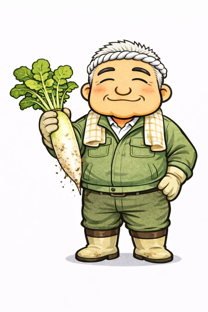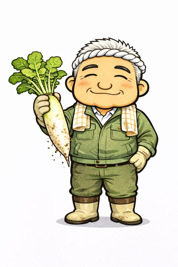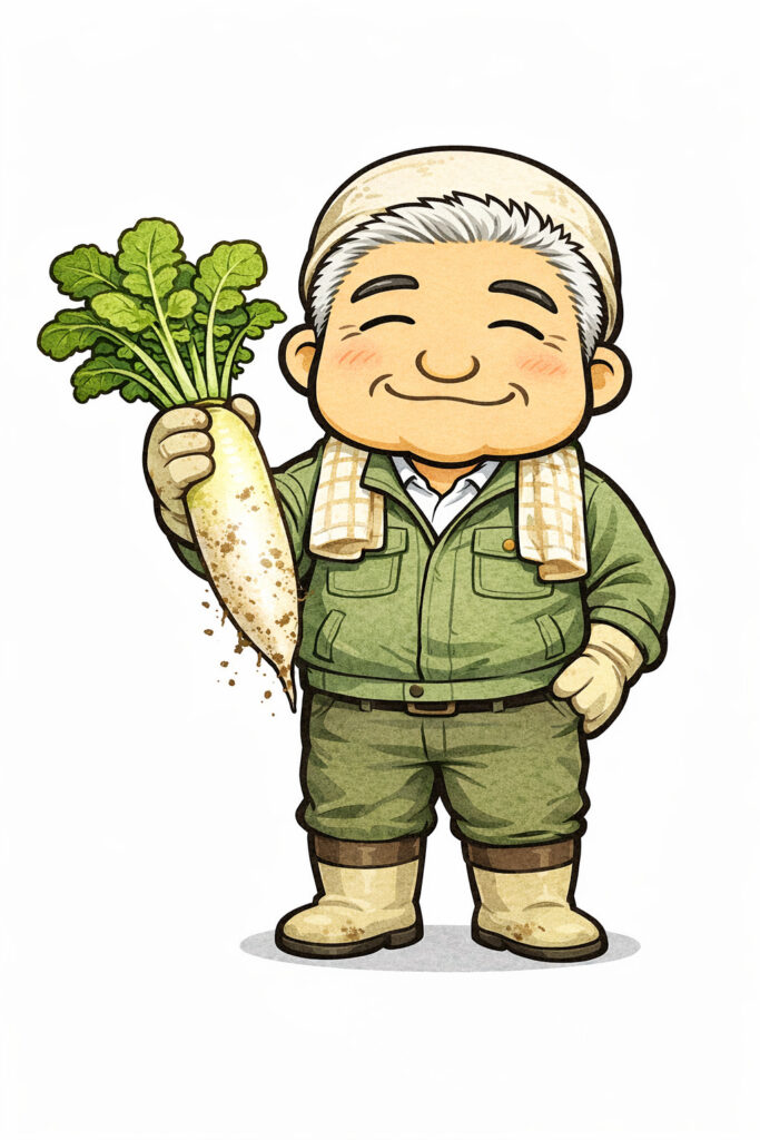 手に収穫した大根持たせたり…